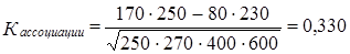 Наконец, вполне возможно предложить показатель тесноты связи в форме отношения избытка суммы гомогенных сочетаний над их пропорциональной суммой к предельно возможному избытку.