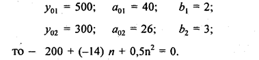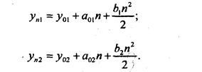Та же задача может быть решена на основе ускорений. Имеем первый ряд с базисным уровнем у01, базисным абсолютным изменением a01 и средним ускорением b1; второй ряд - с показателями у02, а02, b02. При каком числе п периодов (лет) после базисного уровня рядов сравняются?