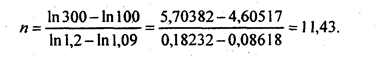 т. е. искомый срок равен частному от деления разности логарифмов уровней рядов в базисном периоде на разность логарифмов темпов изменения, только переставленных при вычитании. Обычно и в числителе, и в знаменателе от большего логарифма вычитается меньший. Например, первый ряд имеет у10 = 300; k1 =1,09; второй ряд имеет у110 100; k11 = 1,2. Тогда: