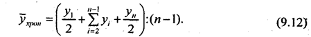 В моментном ряду роль, смысл среднего уровня в том, что он характеризует уже не состояние объекта в отдельные моменты, а его среднее, обобщенное состояние между начальным и конечным моментом учета. Из этого следует, что роль уровней, отно-t сящихся к начальному и конечному моменту, существенно иная, чем роль уровней на моменты внутри изучаемого отрезка времени. Начальный и конечный уровни находятся на границе изучаемого интервала, они наполовину относятся к предыдущему и последующему интервалам и лишь наполовину к изучаемому. Уровни, относящиеся к моментам внутри осредняемого интервала, целиком относятся только к нему. Отсюда получаем особую форму средней арифметической величины, называемой хронологической средней: