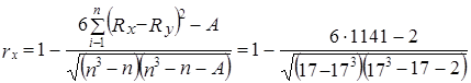 Ввиду наличия трех пар «связанных рангов» применяем формулу (8.26):