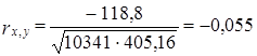 Коэффициент регрессии для линейной зависимости принимает вид: