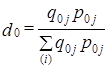 В том и другом варианте представлены невзвешенные средние. Первый вариант исходит из того, что цена рассчитывается за единицу товара, например за 1кг, и сумма цен может рассматриваться как набор слагаемых с равными весами. Однако, этот вариант не отвечает задаче осреднения показателей изменений цен на отдельные товары. Второй 'вариант настораживает тем, что согласно общему правилу средняя из относительных величин должна вычисляться как средняя взвешенная. Действительно, если говорить конкретно об измерении динамики цен на все продовольственные или непродовольственные товары, то ясно, что если цены на ювелирные изделия из золота удвоятся, а цены на хлеб останутся неизменными, это не значит, что в целом цены выросли на 50% ((2+ 1)/2 = 1,5). Приведенный пример показывает, что индекс цен для каждого товара должен сопровождаться неким «весом», который позволяет оценить относительную значимость этого индекса для потребителя. В качестве веса используют удельный вес в общей стоимости покупок: в базисном периоде: