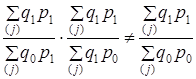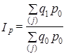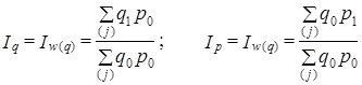 Признак-вес выполняет функцию веса по отношению к индексируемому признаку; его значение в данном индексе принимается неизменным, так как он не должен искажать оценку изменения индексируемого признака. В Iq признаком-весом является р, а в Ip - q.