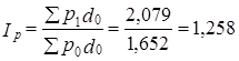Iр = 2,08 тыс. руб:/кг: 1,65 тыс. руб./кг = 1,259·100% = 125,9%