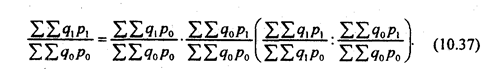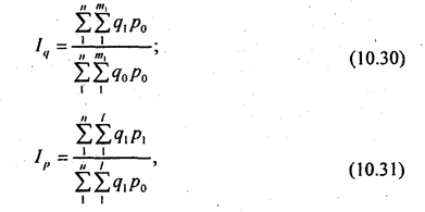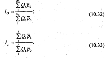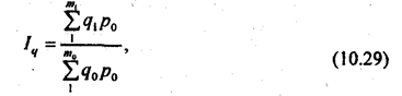 Если стоит задача измерить влияние объема продаж на величину выручки от продажи, т. е. найти Iw(q), то это влияние измеряет индекс, найденный по заводскому методу. Его величина отражает одновременно и изменение объема продажи во всех видах торговли, и изменение структуры продажи.