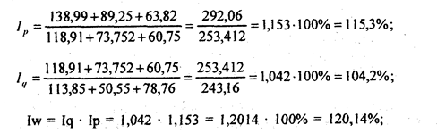 Можно оценить эффект совместного изменения признаков q и р в системе индексов, построенных по заводскому методу: