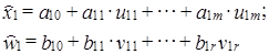 Заметим, что в принципе, как уже отмечалось, круг факторов для и w может частично совпадать. В случае непосредственной связи между х и w, та из переменных, которая является независимой, может включаться в регрессию другой (зависимой) переменной. Положим, что круг объясняющих переменных для х и w остался неизменным в отчетном периоде по сравнению с базисным. Принимая регрессии линейными, имеем по две регрессии для х и w, описывающих базисное и отчетное состояние х и w.