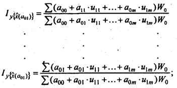 может возникнуть как вследствие изменений значений переменных u1,..., иm, так и в результате изменений силы их влияния на х- коэффициентов регрессий а11, а12...,a1m по сравнению с a01, а02,..., а0m. Раздельную оценку влияния на у глубинных факторов и и силы их воздействия а можно получить на основе специальной системы индексов. При этом рекомендуется первичным считать значение переменной, а вторичным - коэффициент регрессии[17].