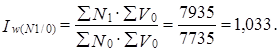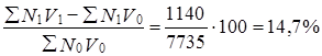 Как отмечает Г. И. Бакланов, влияние каждого фактора на относительное изменение общей абсолютной величины можно получить, выразив соответствующую абсолютную разность в процентах к общей абсолютной величине в базисном периоде[18]. Вычисляя относительное влияние факторов таким образом, мы получим аддитивное разложение относительного изменения результативного признака. При этом относительная оценка влияния первичного признака (N) будет той же самой (+3,3%), а относительная оценка влияния вторичного признака (v) изменится и составит: