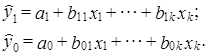 где первый подстрочный значок в каждой регрессии обозначает период, к которому она относится, второй - номер параметра или переменной, соответственно.