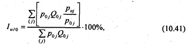 В свою очередь, каждый иа индексов цен по товарам этой группы обобщают динамику цен на данный товар по всем видам торговли. Например, индекс цен на говядину в городе N определялся по данным табл. 10.18.
