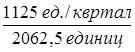 Если предположить, что поток был в течение года равномерным, то за квартал он составит 1125 единиц, тогда средний запас за I квартал составит: