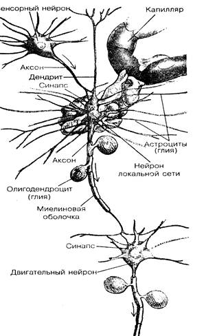 Большинство нейронов являются специфическими, т. е. выполняют определенные функции. Например, нейроны, обеспечивающие проведение импульсов от периферии к ЦНС, называются «сенсорными нейронами». В свою очередь, нейроны, отвечающие за передачу импульсов от ЦНС к мышцам, называются «двигательными нейронами». Нейроны, отвечающие за обеспечение связи одних участков ЦНС с другими, называются «нейронами локальной сети».