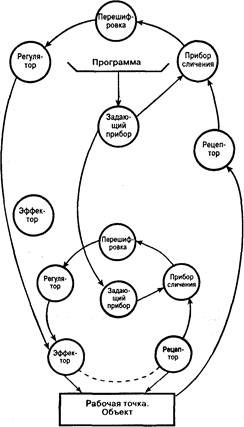 Рассматривая данную схему, необходимо обратить внимание на одну интересную деталь. Рецептор не всегда посылает сигналы на прибор сличения. Бывают случаи, когда сигнал поступает сразу на задающий прибор. Это бывает в тех случаях, когда экономичнее перестроить движение, чем его корректировать. Это особенно важно в экстренных ситуациях.