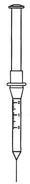 Нормальными раздражителями для тактильных рецепторов являются прикосновения, вызывающие деформацию кожи, для холодовых — воздействие предметов более низкой температуры, для тепловых — воздействие предметов более высокой температуры, для болевых — любые из перечисленных воздействии при условии достаточно большой интенсивности. Местонахождение соответствующих рецепторных точек и абсолютные пороги чувствительности определяются с помощью эстезиометра. Простейший прибор — волосковый эстезиометр (рис. 7.3), состоящий из конского волоса и прибора, позволяющего измерять давление, оказываемое этим волосом на любую точку кожи. При слабом прикосновении волоса к коже ощущения возникают только при непосредственном попадании в тактильную точку Аналогично определяют местонахождение холодовых и тепловых точек, только вместо волоса используют тонкое металлическое острие, наполненное водой, температура которой может меняться.