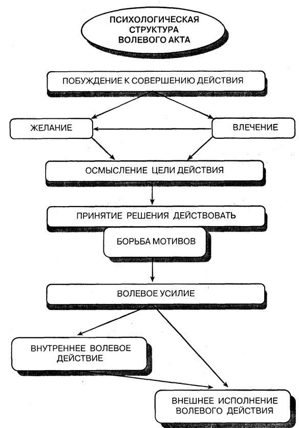 С чего начинается волевое действие? Конечно, с осознания цели действия и связанного с ней мотива. При ясном осознании цели и мотива, вызывающего ее, стремление к цели принято называть желанием (рис. 15.2).
