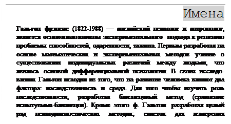 В 1884 г, Гальтон организовал на Лондонской международной выставке здоровья антропометрическую лабораторию, где любой посетитель, заплатив три пенса и заполнив анкету, мог проверить свои интеллектуальные способности и определить свою мышечную силу, вес, рост и т. п.