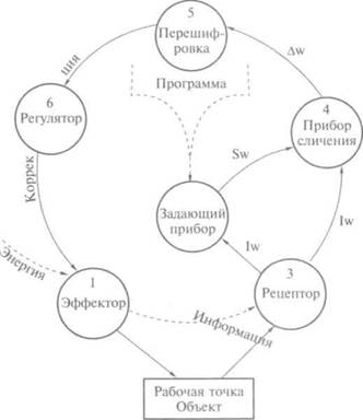 метра регулируемого органа (например, мышцы). Но проприорецептор воспринимает фактическое в данный момент значение (Iw, сокращение слова «Istwert» — наличное значение) данного параметра (например, мышца еще недостаточно сократилась, чтобы рука смогла взять тот или иной предмет). Если прибор сличения констатирует какое-либо отклонение lw от Sw, т.е. Aw, происходит коррекция начавшегося движения и мышца получает соответствующую команду изменить свое положение. Новое положение мышцы вновь отражается проприорецепторами самой мышцы или другими рецепторами (допустим, зрительными), происходит сличение нового положения мышцы с требуемым — и совершается новый цикл регулирования движения, пока, наконец, не будет достигнута поставленная цель.