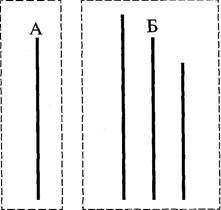 Рассмотрим известный, классический пример конформного поведения. В одном из первых исследований конформности (они были начаты САшем в 50-е годы в США) для создания необходимой экспериментальной ситуации были использованы простые зрительные стимулы — линии разной длины, расположенные вертикально рядом друг с другом (рис. 30). В эксперименте участвовали от 7 до 9 человек, из которых только один был настоящим испытуемым, а остальные выступали как добровольные помощники экспериментатора. С ними он заранее договорился о том, что в экспериментальной ситуации они будут давать заведомо ложный ответ на заданный экспериментатором вопрос. При этом настоящий испытуемый, принимавший участие в эксперименте, не подозревал, что остальные члены груп-