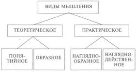 Мышление — это особого рода теоретическая и практическая деятельность, предполагающая систему включенных в нее действий и операций ориентировочно-исследовательского, преобразовательного и познавательного характера. На рис. 51 представлены основные виды мышления. Рассмотрим их подробнее.