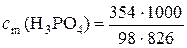 Молярная масса H3PO4 равна 98 г/моль. Молярную концентрацию раствора находим из соотношения (1):