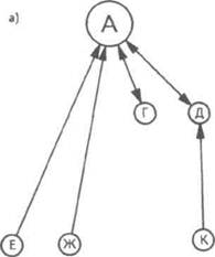 Круговая структура коммуникаций (д) отличается от цепной. Во-первых, здесь одинаковыми возможностями располагают все без исключения члены группы. Во-вторых, имеющаяся в их распоряжении информация может циркулировать между членами группы, дополняться и уточняться. В-третьих, находясь лицом к лицу, участники такой структуры коммуникаций могут непосредственно наблюдать за реакциями друг друга, учитывать их в своей работе.