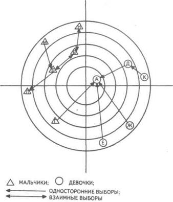 Рис. 76. Социограмма-мишень, представляющая взаимоотношения в группе,