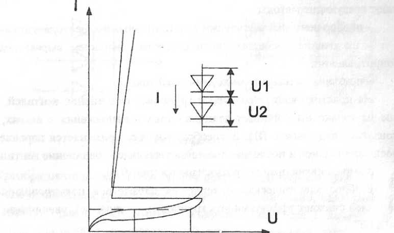 Рис. 9.5. Вольтамперные характеристики тиристоров, включенных последовательно