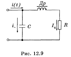 Сглаживающий фильтр состоит из реактивных элементов: конденсаторов и катушек индуктивности (дросселей). Сущность работы сглаживающего фильтра состоит в разделении пульсирующего тока i(t) на постоянную I0 и переменную in составляющие (рис. 12.9). Постоянная составляющая направляется в нагрузку, а нежелательная переменная замыкается через конденсатор, минуя нагрузку.