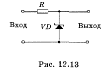Цепь, изображенная на рис. 12.13, обеспечивает постоянное выходное напряжение при изменениях входного напряжения. Любое изменение напряжения проявляется в виде изменения падения напряжения на резисторе. Сумма падений напряжения должна равняться входному напряжению. Выходное напряжение может быть увеличено или уменьшено путем замены стабилитрона и последовательно включенного резистора.