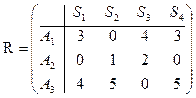Используя показатель риска, расчет которого осуществляется на основании таблицы (матрицы) выплат, можно построить таблицу (матрицу) риска R =||rij|| или таблицу (матрицу) упущенных возможностей.