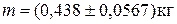 Dm = 0,0567кг, среднее значение величины m ср = 0,438кг. Результат измерений представляется следующим образом: