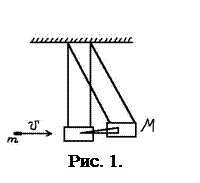 КРАТКАЯ ТЕОРИЯ. Баллистический маятник представляет собой массивное тело, чаще всего полый цилиндр, подвешенный на легких длинных нитях (рис.1). В маятник М горизонтально выстреливается пуля массой m таким образом, чтобы между ними произошел центральный неупругий удар.