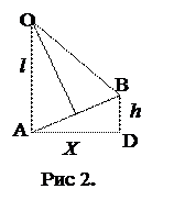 | АВ=АD= Х, АО = ОС = l. Из подобия треугольников АВD и ОАС следует, что или , тогда . (4) |