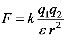 e – диэлектрическая проницаемость среды, показывающая во сколько раз сила взаимодействия зарядов в данной среде меньше, чем в вакууме.