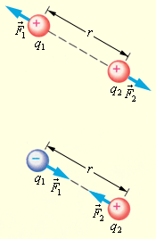 направлена по прямой, соединяющей взаимодействующие точечные заряды, соответствует притяжению в случае разноименных зарядов и отталкиванию в случае одноименных зарядов.