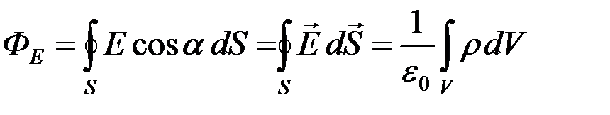 В случае, если электрические заряды распределены внутри объёма V, ограни-ченного замкнутой поверхностью S, с некоторой объемной плотностью