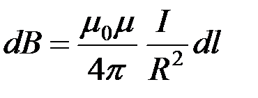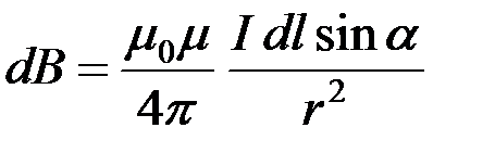 Следовательно, индукция dB, создаваемая элементом проводника dl с током I: