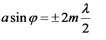 Если же число зон Френеля, укладывающихся на щели, четное, то в точке В наблюдается дифракционный минимум (при интерференции света от каждой пары соседних зон Френеля амплитуда результирующих колебаний равна нулю, так как колебания от каждой пары соседних зон взаимно гасят друг друга). Этому условию соответствует соотношение: