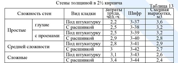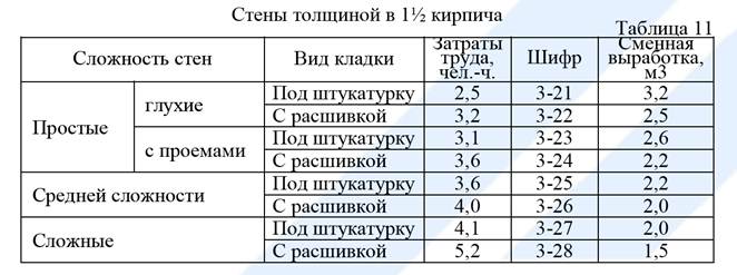 Определите трудоемкость работ в человеко-часах по кладке продольной стены толщиной в 2 кирпича типового этажа высотой 3 м. Длина стены – 60 м. В стене имеется 10 оконных проемов размерами 1,5х 1,2м. Кладка средней сложности с расшивкой швов.