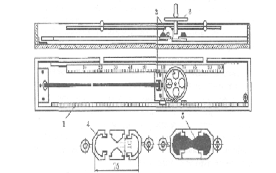 Рис.4.1. Дуктилометр: 1 – червячный винт; 2 – салазки; 3 – маховик;