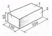 Рис.5.1. Кирпич керамический полнотелый: 1 – постель; 2 - ложок; 3 – тычок