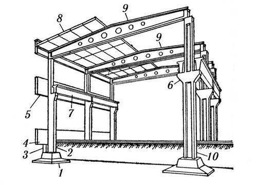 Промышленное здание с железобетонным каркасом (схема)