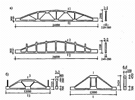 Стропильные (а) и подстропильные (б) фермы