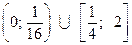 «Обоснованно получен ответ, отличающийся от верного ответа исключением точек х = 0,25 и/или х = 2; ИЛИ