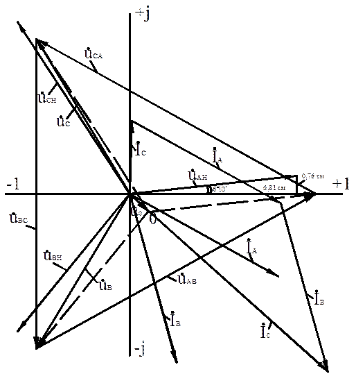 Точка 0, в которой окажутся их начала, есть нейтраль нагрузки. В этой точке находится конец вектора напряжения смещения нейтрали