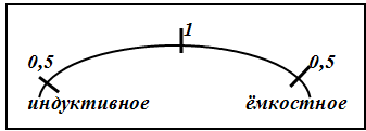 Фазометровка, так же как и в ваттметре, шкала градуируется индуктивной, ёмкостной составляющей cos 𝜑. Пример: 0,5;1: 0,5.