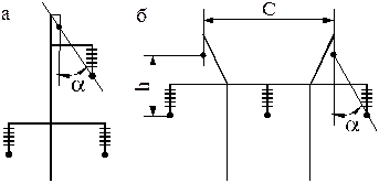 Линии с расположением проводов согласно рис. 2.2, защищаются одним тросом (рис. 2.3а), линии с горизонтальным расположением проводов – двумя тросами (рис. 2.3б). Линии 220 и 330 кВ на опорах высотой 35–45 м иногда защищаются двумя тросами на подходах к подстанциям, а в отдельных случаях (в районах с сильной грозовой деятельностью) – по всей длине.