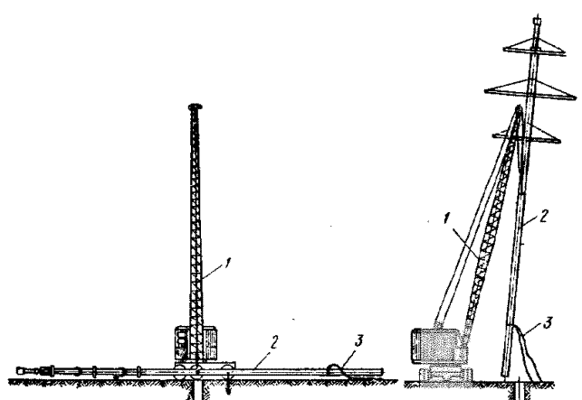Рис. 10.1. Установка одностоечных железобетонных опор для ВЛ